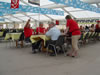 Mit 25 Mitgliedern reiste die Schützengesellschaft der Stadt Laufen am Montag, 27.06.2005, um 5 Uhr morgens mit zwei Kleinbussen an das Eidgenössisch Schützenfest in Frauenfeld. Nahezu die gesamte Sektion trat im neueneinheitlichen Look (rotes Polo-Shirt und die Vereinsjacke) auf. In Frauenfeld angekommen richteten wir uns auf unseren rangierten Scheiben ein und versuchten die dicht beieinander stehenden Scheiben wennmöglich in der Mitte zu treffen. Was sich als äusserst schwierig herausstellte. Nicht gerade hilfreich dabei war Petrus, der uns mit schweisstreibenden Sonnenstrahlen eindeckte. So manch ein Schütze konnte kaum sagen, warum unter seinen gut platzierten Schüssen immer wieder Ausreisser ausserhalb des Achterkreises hatte. Mit viel Glück schafften wir es uns einen goldenen Lorbeerkranz zu ergattern. Nachdem alle mehr oder weniger Erfolgreich abgerechnet haben, verliessen wir das Eidgenössische Schützenfest von Frauenfeld. |
